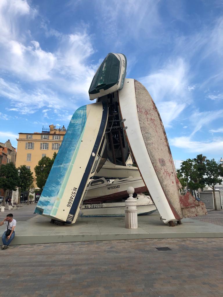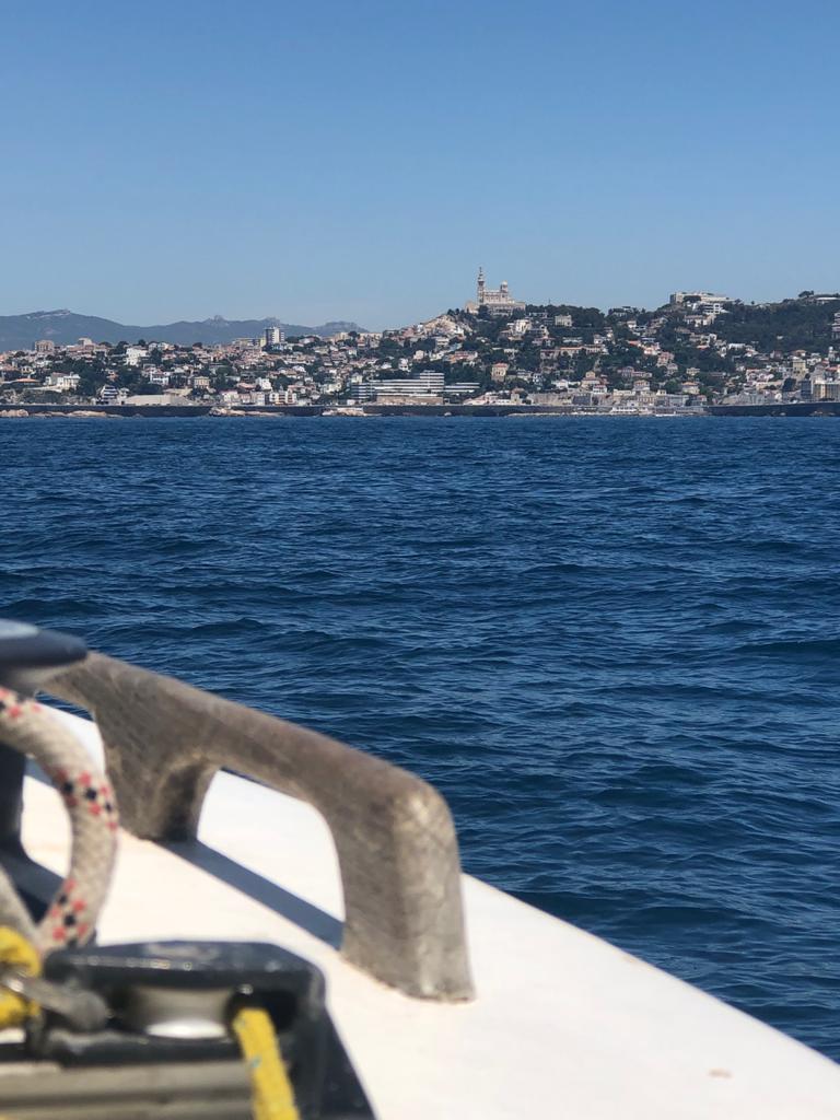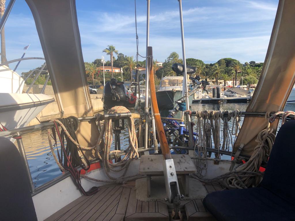 Uitzicht vanaf de boot in de haven van Cavalaire-sur-Mere en tijdens het wandelen heb je mooie uitzichten over de bij of het strand of een mooie huizen enzovoort